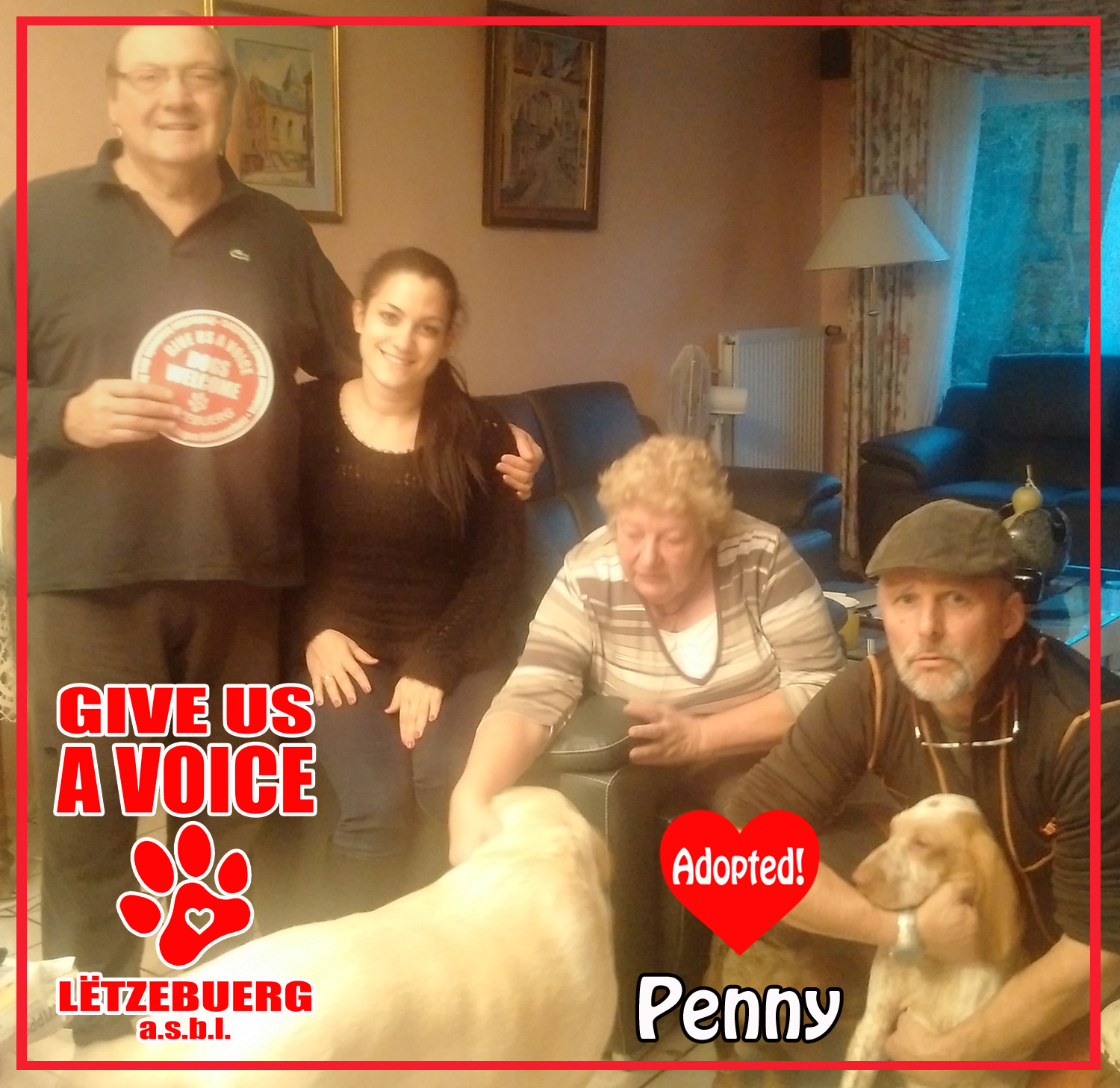 Penny, une Braque italienne âgée de 4 mois, a trouvé un foyer pour le restant de ses jours. Nous sommes enchantés que le calvaire de cet adorable chiot ait enfin trouvé une fin heureuse ! Nos vifs remerciements à Monsieur EISCHEN de lui avoir offert le foyer qu’elle mérite. Nos remerciements vont aussi à la famille J. BELLING d’avoir accueilli Penny pendant le temps de notre recherche d’un foyer approprié.