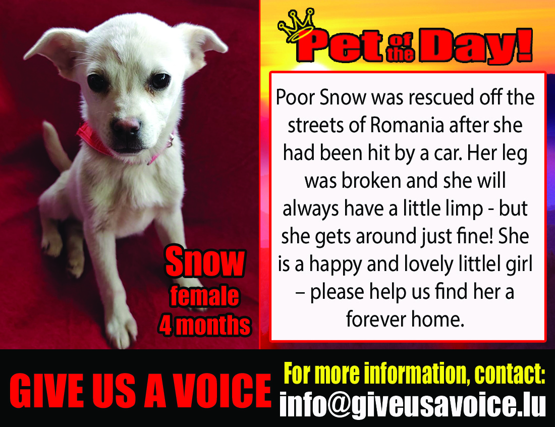 GIVE US A VOICE! That's the name of a new association created by a handful of volunteers for animal rights. The purpose of our association is to help our animal friends in distress, not only in Luxembourg but beyond borders.
