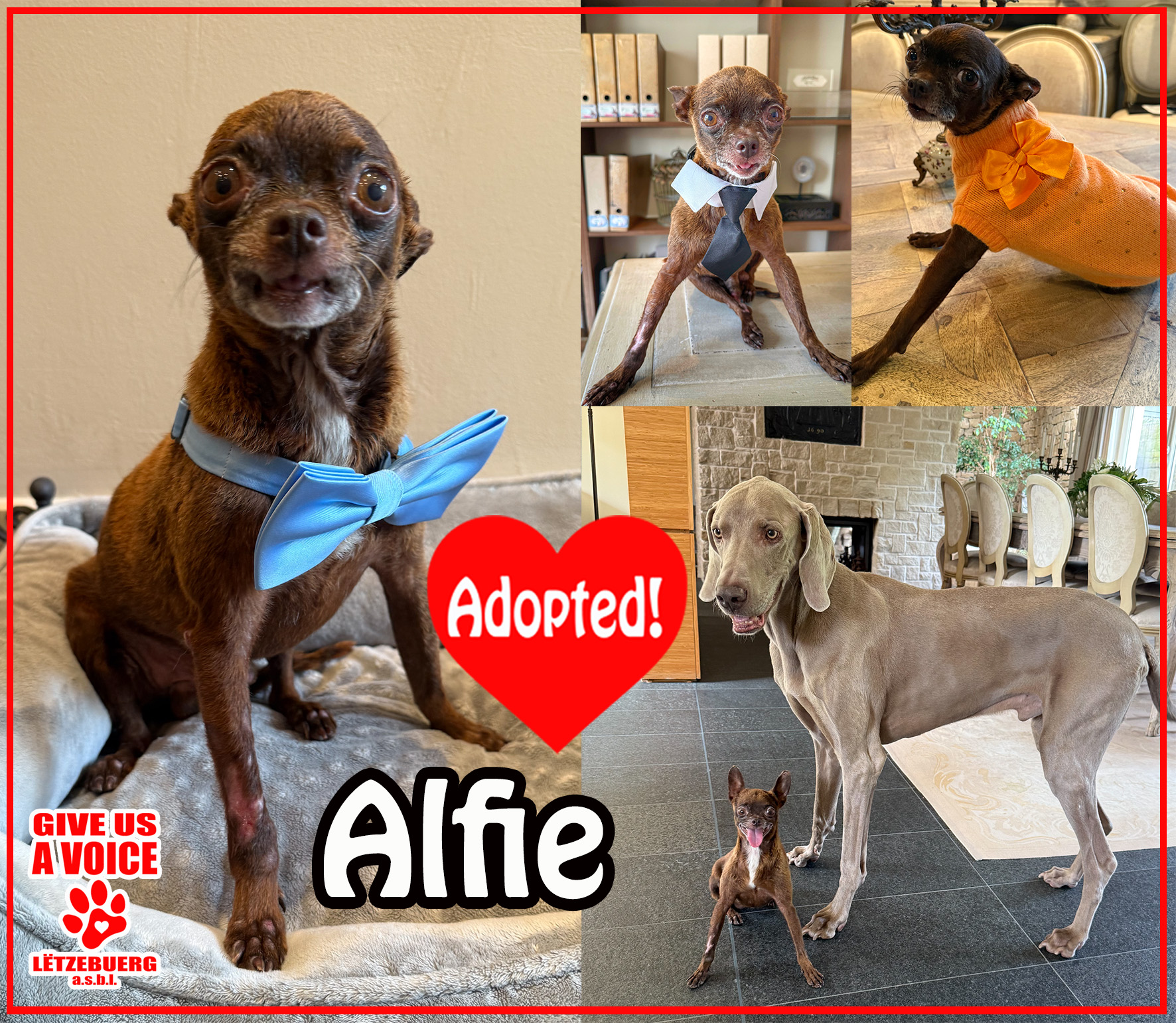 GIVE US A VOICE has amazing news to report: Alfie is adopted! Poor Alfie was abandoned at the shelter and was a total mess – he had skin problems, cuts all over his body and he walked funny because his back legs were deformed. Little did he know then that his whole life was about to change when we were contacted by an amazing family who volunteered to foster him. We were over the moon for this dog but his luck got even better! One look at him and his foster family decided to make Alfie a permanent member of the family and adopted him immediately. We can’t thank this amazing family enough for giving Alfie a dream life. He is getting all the love, care and attention he deserves and is living like a little prince. This is the second dog from our association that this family has adopted and we wish they could take them all! Our hearts are happy knowing Alfie is happy. THANK YOU! THANK YOU! THANK YOU!