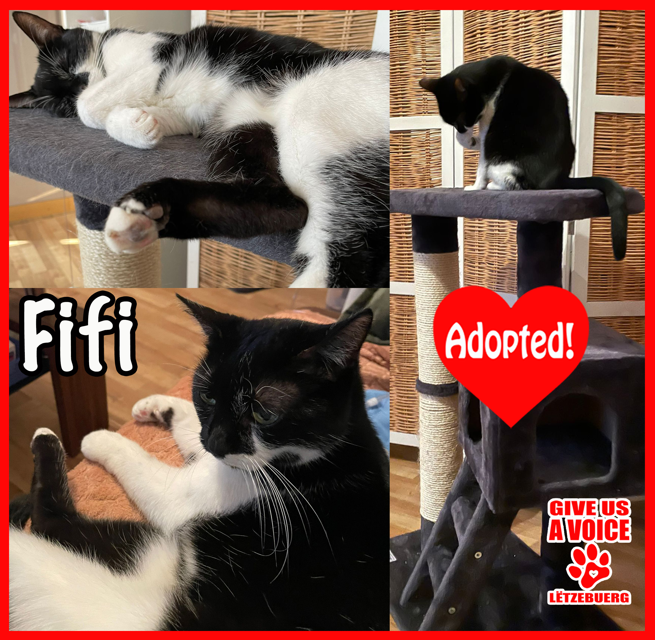 Great news: Fifi is adopted! Fifi came to into our association after her owner sadly passed away. Luck was on Fifi’s side when she captured the eye and the heart of the lovely Peller family who decided to welcome her home. GIVE US A VOICE would like to give the Peller family a big THANK YOU for giving Fifi a second chance at happiness. We know Fifi is in good hands and can look forward to a life filled with love and happiness. THANK YOU! THANK YOU! THANK YOU!
