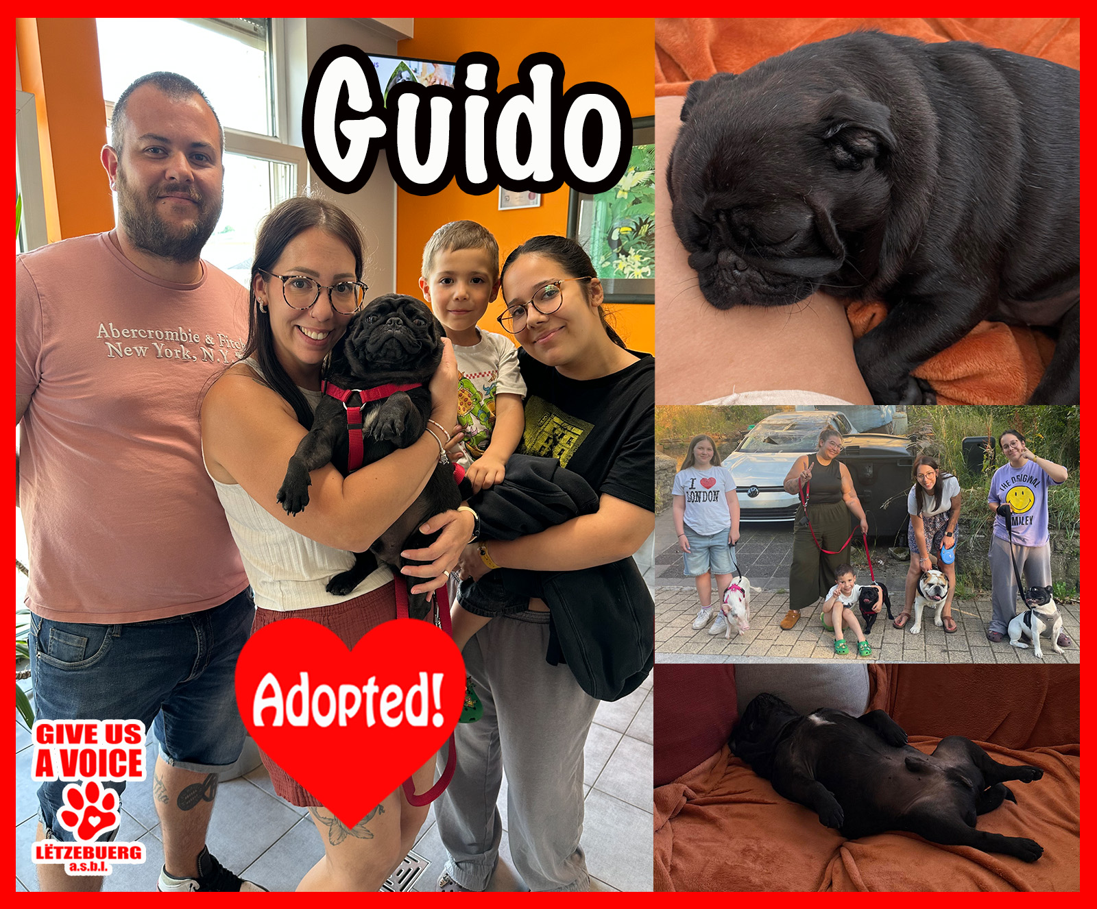 GIVE US A VOICE is thrilled to announce that Guido is adopted! This lucky pup captured the eye and the heart of the wonderful Pelle family who decided to welcome him home. This is the second lucky dog in need from our association to join their family and we are so grateful. A big, big THANK YOU to the Pelle family for opening up their hearts once again. Guido has a great family, including Babe, the mini pig! Hooray for Guido!
