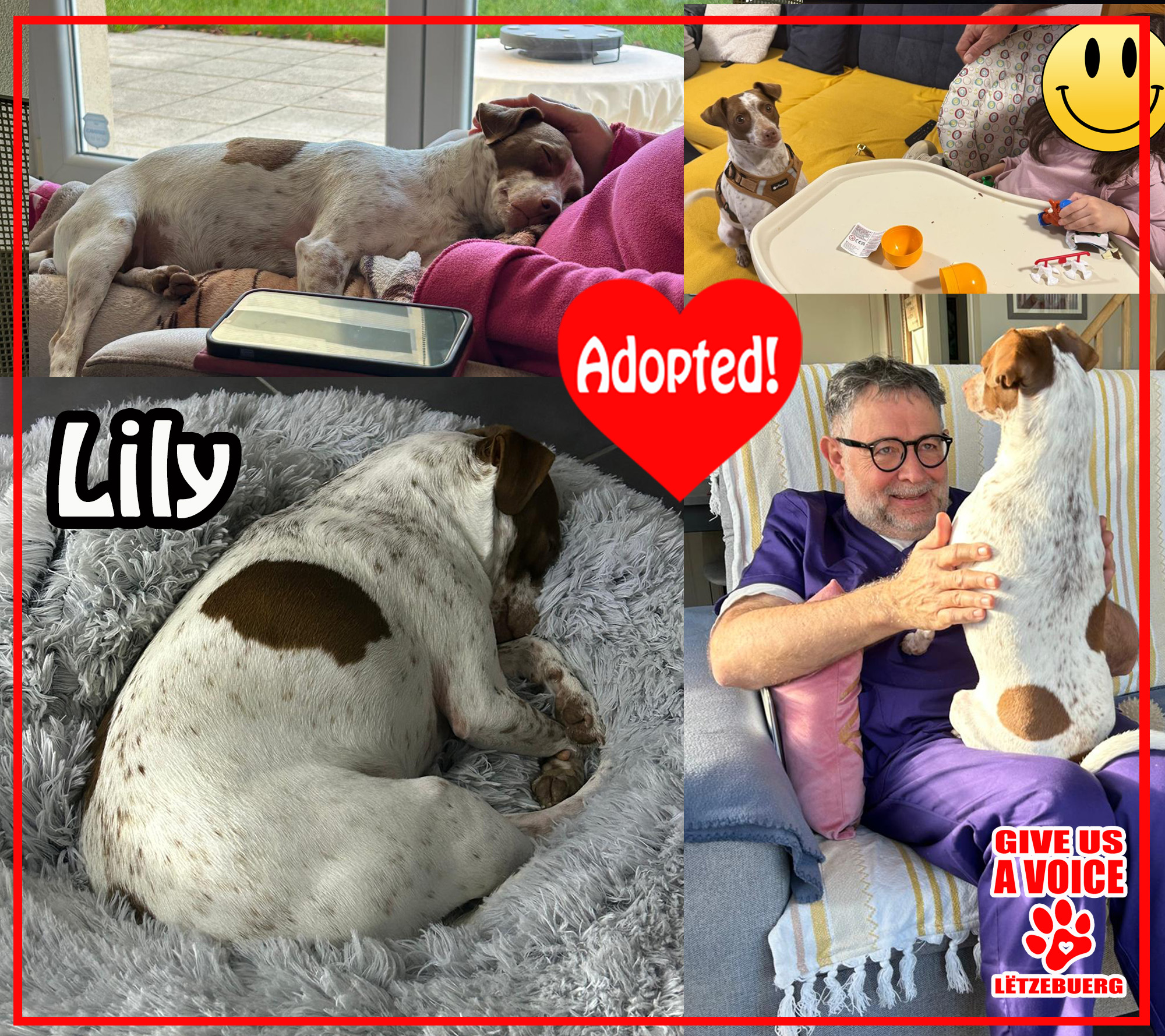 GIVE US A VOICE is beyond excited to let you know that Lily has been adopted! Lily has been with us in foster for a very, very long time. She is a lovely but special dog and we knew it would take a very special family to adopt her. Time went by and we were beginning to think that Lily would be with us forever. We think Lily was touched by an angel when she captured the eye and then the heart of the wonderful Olinger family. This amazing family could not have been more perfect for Lily. They give her the love, calming energy and safe space for her to blossom! We can’t tell you how happy we are or how grateful that Lily is getting the love and life she deserves. We would like to give the biggest THANK YOU to the Olinger family for, once again, adopting a special dog in need. Lily is beyond lucky and it was definitely worth the wait for her to end up in the perfect home. THANK YOU! THANK YOU! THANK YOU!
