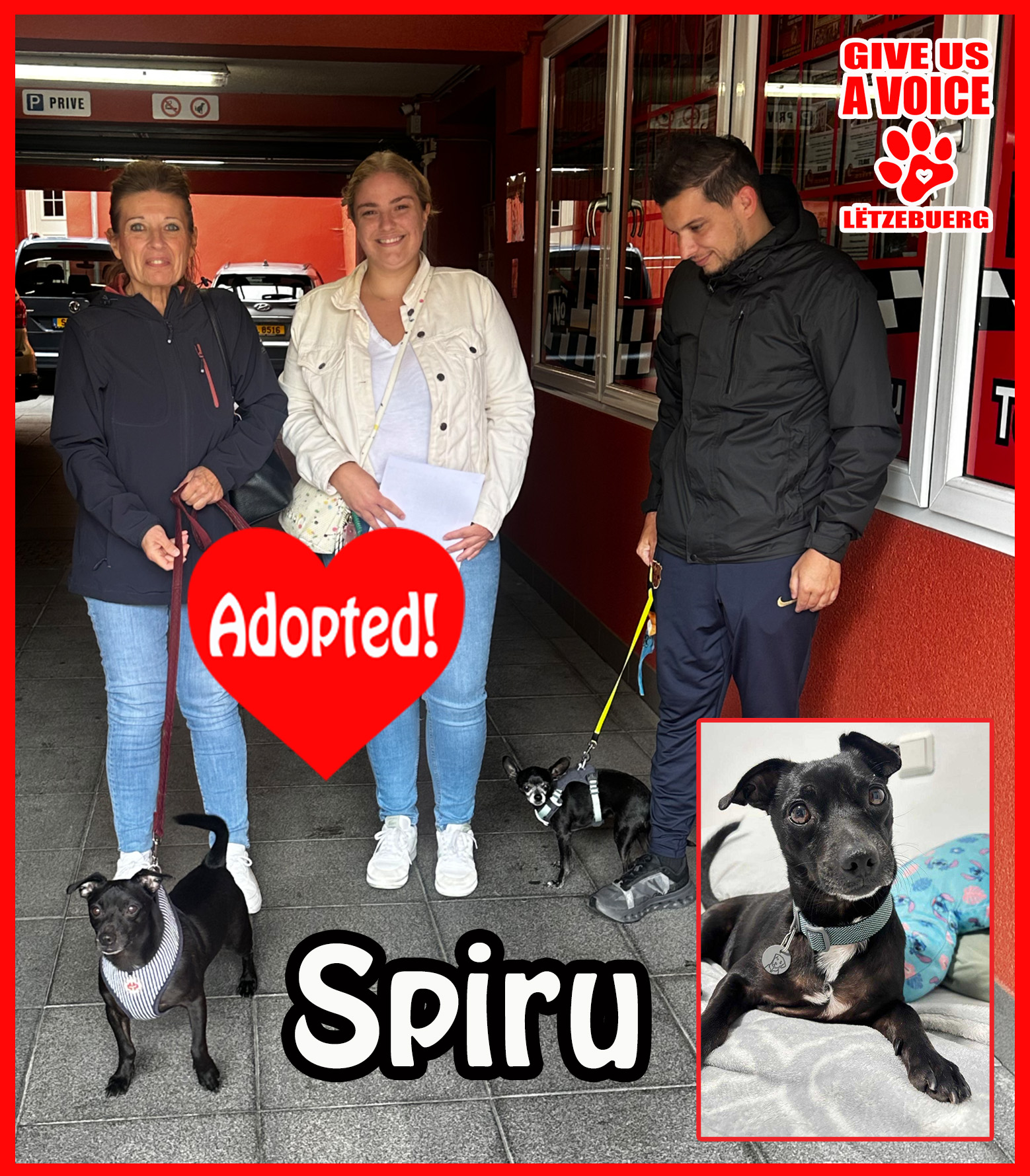 GIVE US A VOICE is pleased to announce that Spiru is adopted! This sweet guy started out as a foster dog and quickly worked his way into being a permanent member of the family. We would like to give a big THANK YOU to Mme. Nadia Vitoria for giving Spiru a second chance at life. We know he can look forward to a long, happy life in his forever home. Hooray for Spiru!