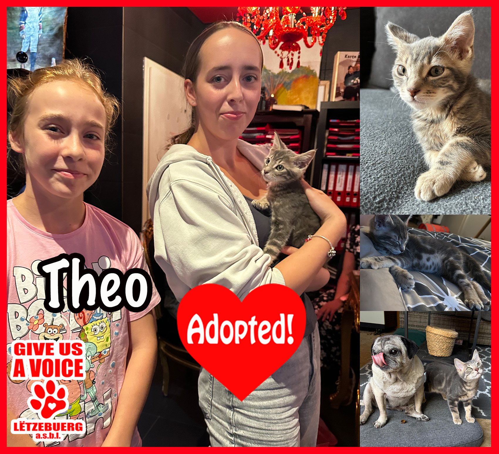 GIVE US A VOICE has amazing news to report – Theo is adopted! Theo was found on the streets of Luxembourg suffering from cerebellar hypoplasia, a life-long neurological disorder that affects balance and coordination. He is a special cat and we knew he needed a special family. Theo absolutely hit the jackpot when he was adopted by the amazing Ackermann family. We would like to give this big-hearted family a big THANK YOU for giving a special needs cat a wonderful and full life. We know Theo can live in love for the rest of his days. THANK YOU! THANK YOU! THANK YOU!